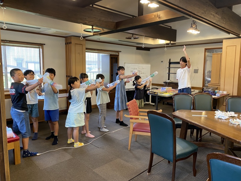 科学実験やおやつ作り・ゲームなど毎日盛りだくさんのプログラムを企画し、学年を超えた活動で子どもたちにとっても